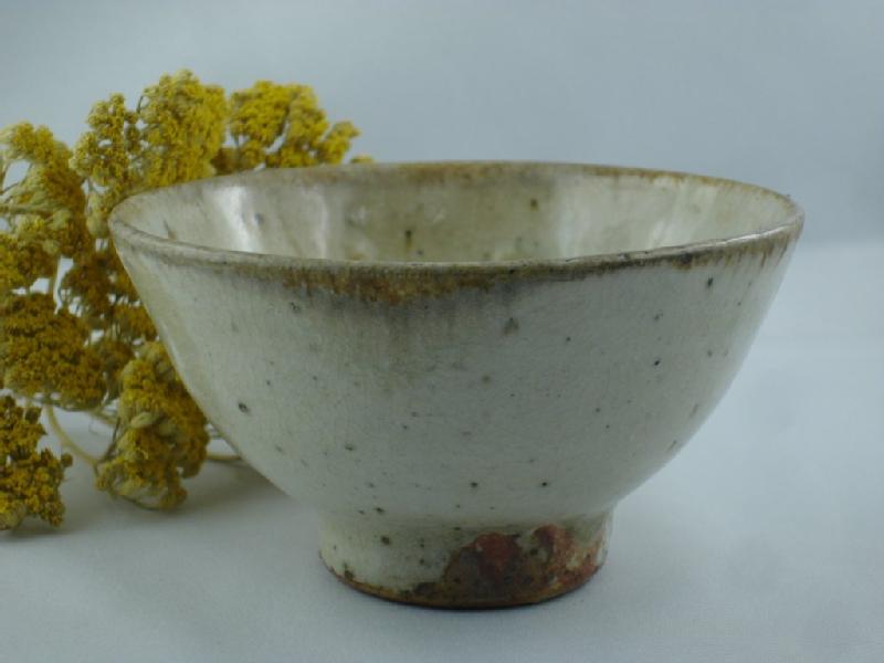This unique teabowl was crafted from 'raw' clay by the artist Alexandre Leroux. In accordance with traditional methods used in Korea, it was wood-fired (Anagama) for several days at 1300°C and marked with the sign of the kiln it was fired in. A truly unique, artisanal piece that complements the beauty of nature magnificently. It is about 11cm wide and 6cm high.