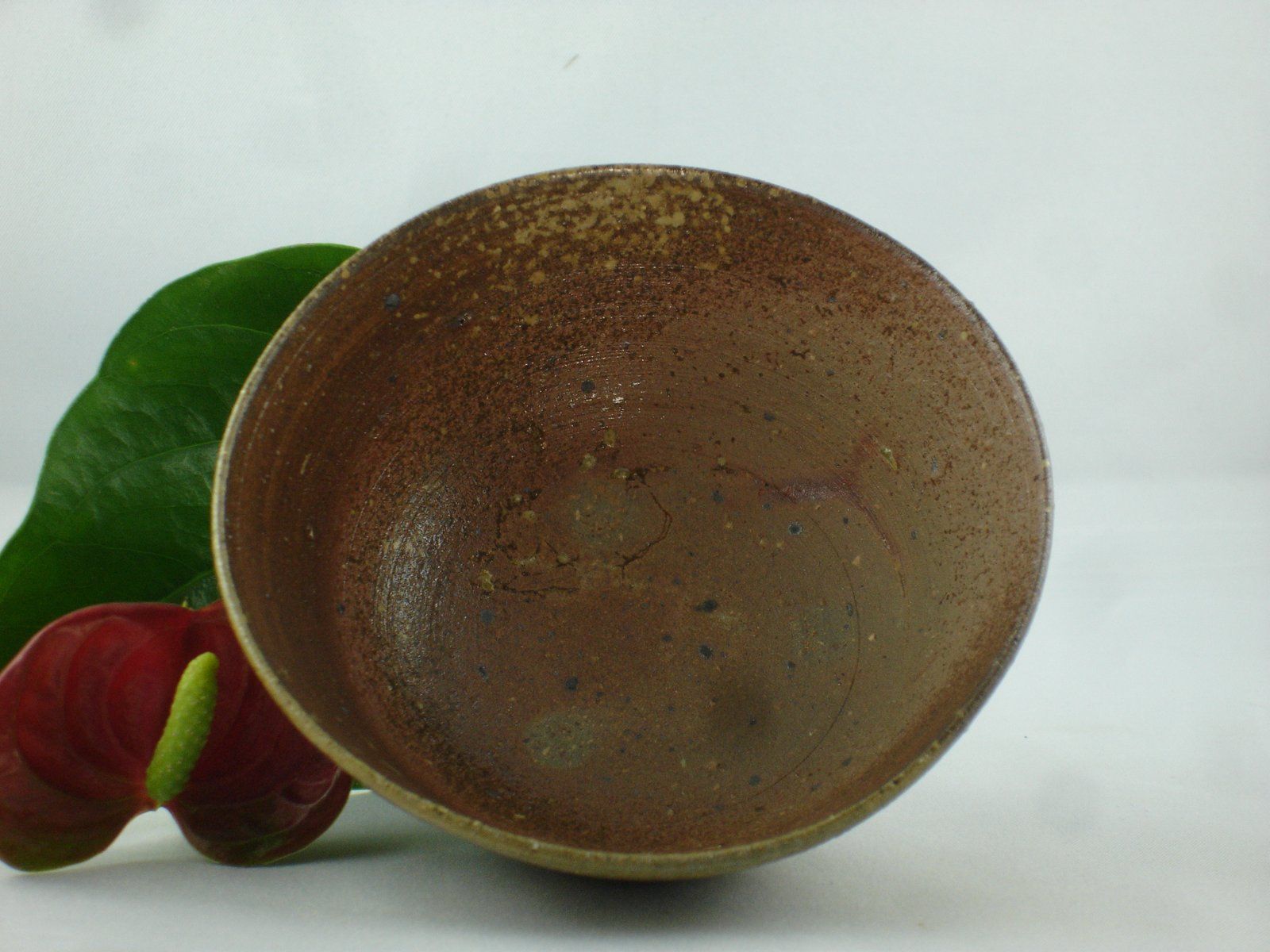 This thinwallet unvarnished teacup was crafted from 'raw' clay by the artist Alexandre Leroux. In accordance with traditional methods used in Korea, it was wood-fired (Anagama) for 76 oures at 1300°C and marked with the sign of the kiln it was fired in. A wild, rugged and very special artisanal piece that complements the beauty of nature magnificently. It is about 10,4cm wide and 5,4cm high.
