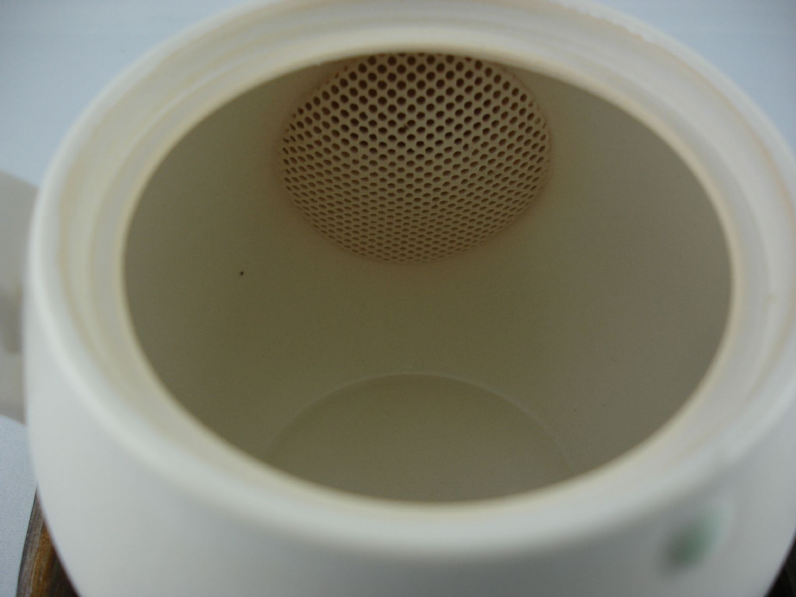 Very nice pot made of clay with glaze and a ceramic strainer. The capacity of the pot is approx. 380ml.