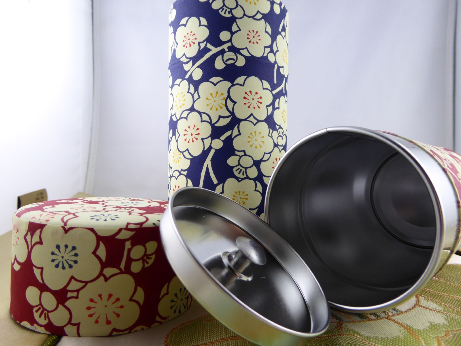 Japanese tea caddy in very beautiful design, covered with paper for about 100-150g tea with inner lid, extra tight closing.