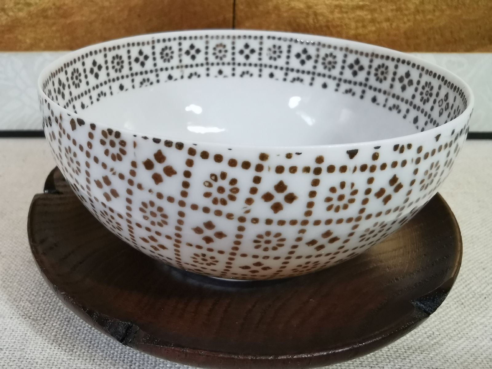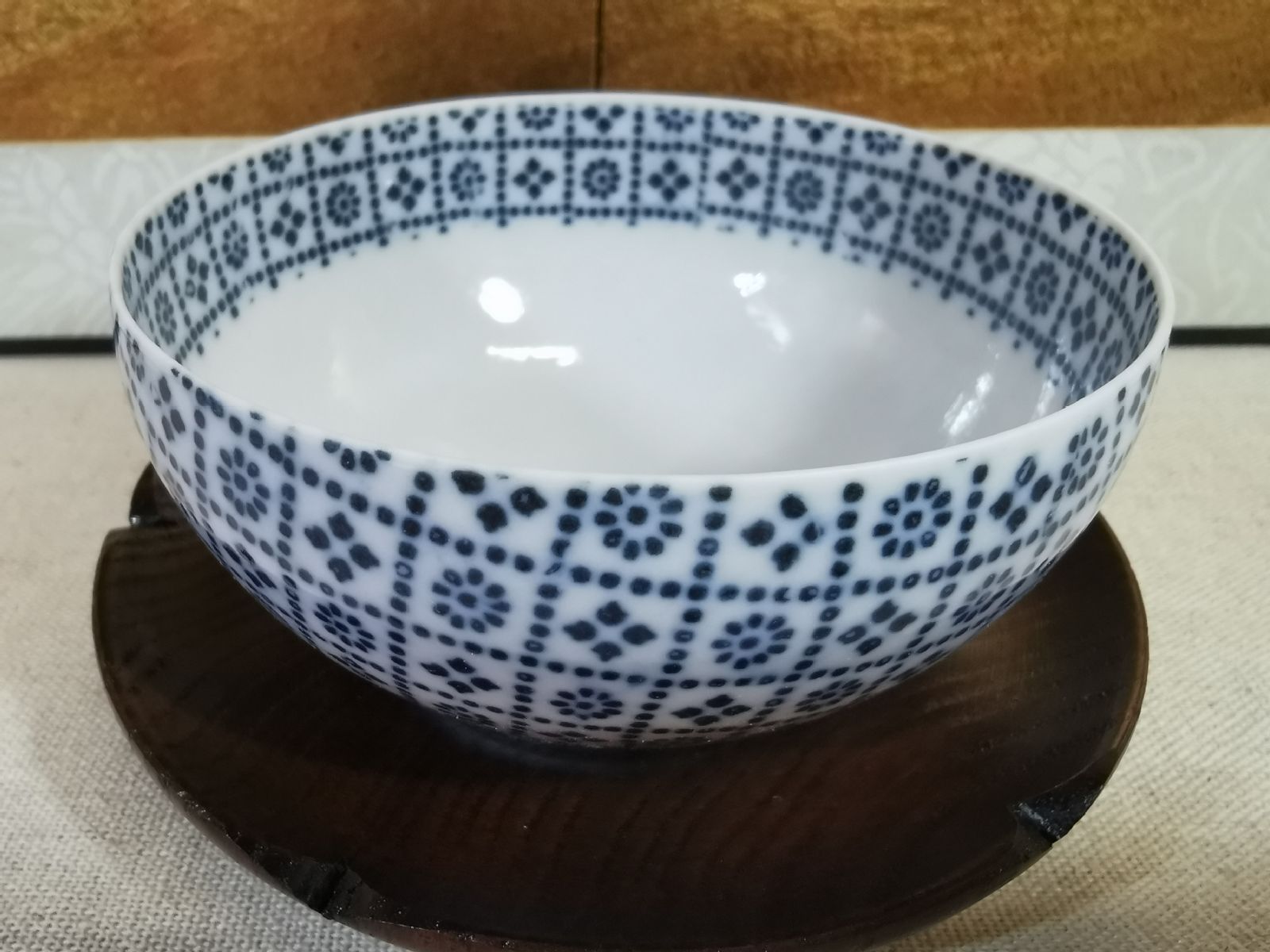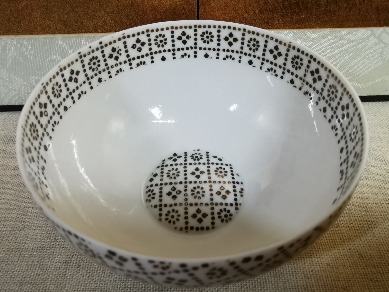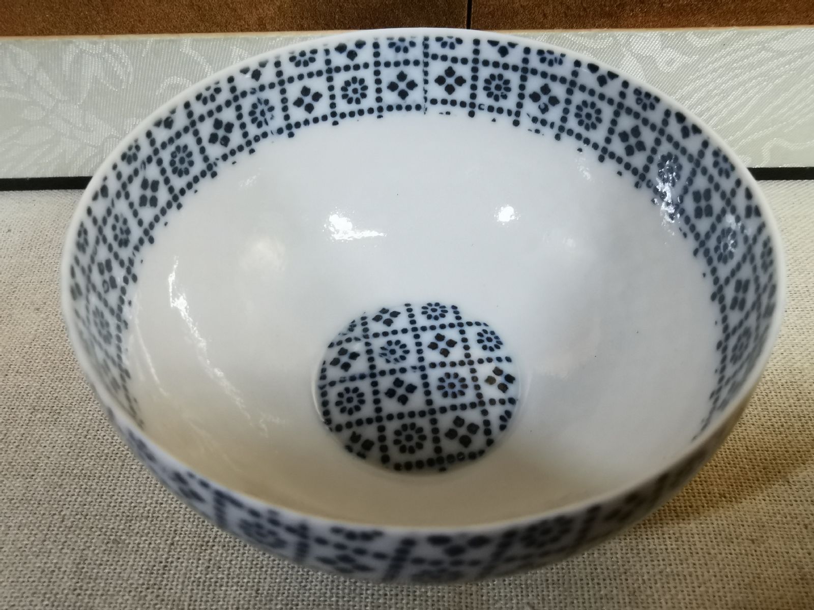 Beautiful, thin tea bowl made of white porcelain, and has a classic Japanese motif. The diameter is about 88 mm, the height about 45mm.