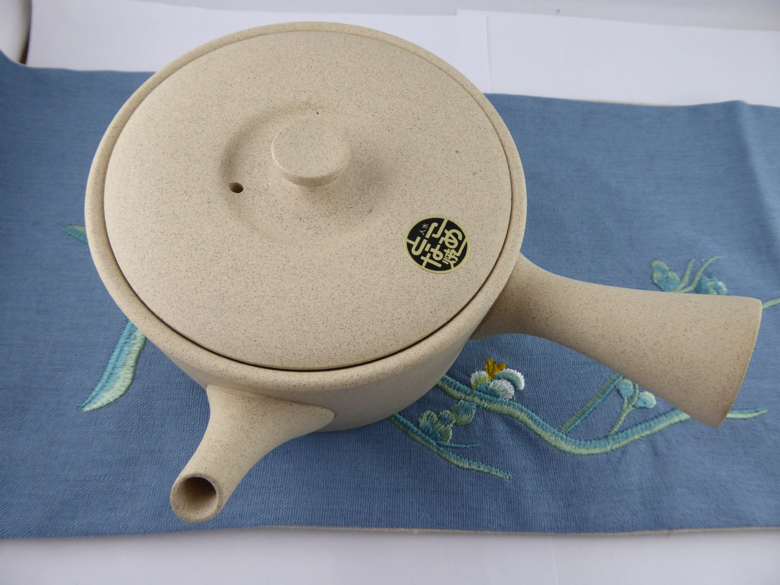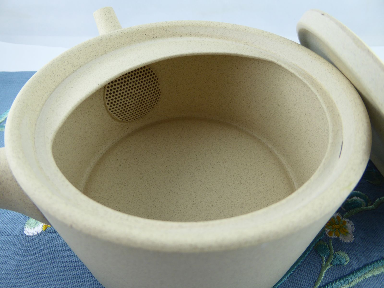 The jug is made of light clay and has a ceramic strainer in front of the pouring spout. The jug has a capacity of 0.55 l.