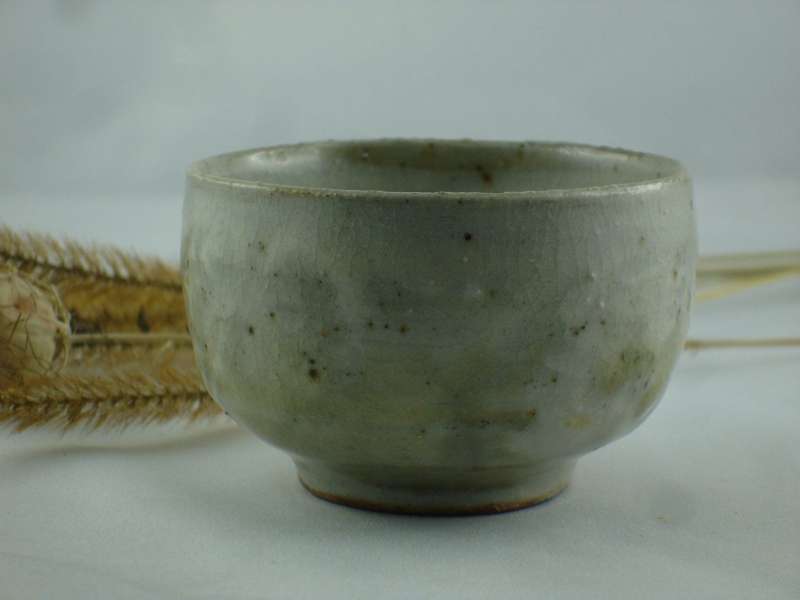This unique teacup/ bowl was crafted from 'raw' clay by the artist Alexandre Leroux. In accordance with traditional methods used in Korea, it was wood-fired (Anagama) for several days at 1300°C and marked with the sign of the kiln it was fired in. A very special artisanal piece with a beautiful surface. It is about 6,7cm wide and 4,5cm high.
