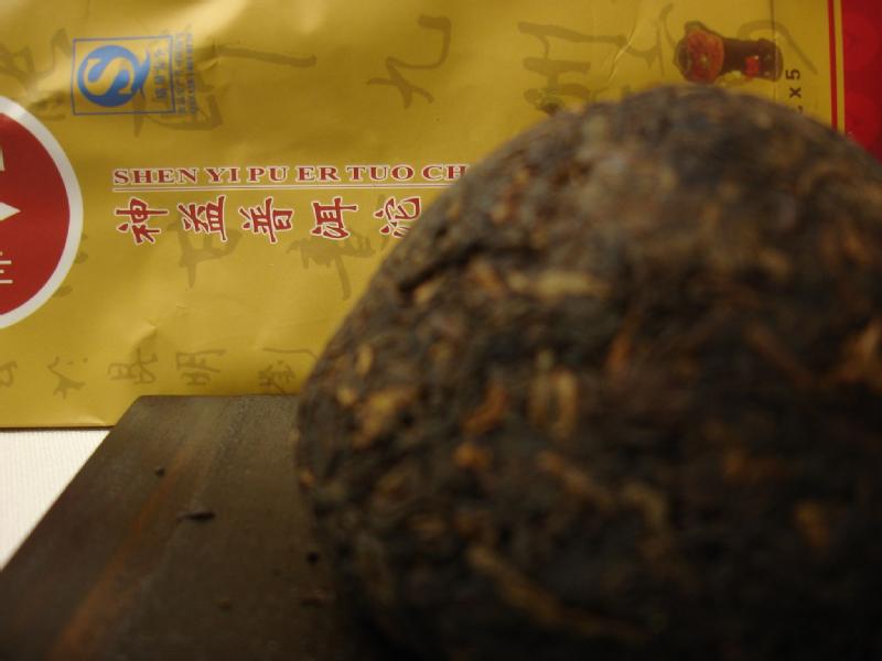 A very good Pu'Er in a classic Tuo Cha shape with many tips and a luscious, deep red and earthy cup.