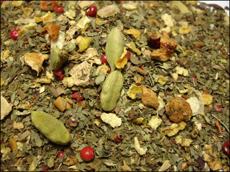 Ayurvedic herbal blend flavoured with orange and ginger Ingredients: tulsi, pieces of apple, green rooibos (certified organic), ginger, pink peppercorns, cardamon, cinnamon, orange zest, flavouring. Instructions: Herbal teas should always be infused with boiling water and left to steep for at least 5-10min. This will ensure that the beverage has infused optimally and is safe to drink.